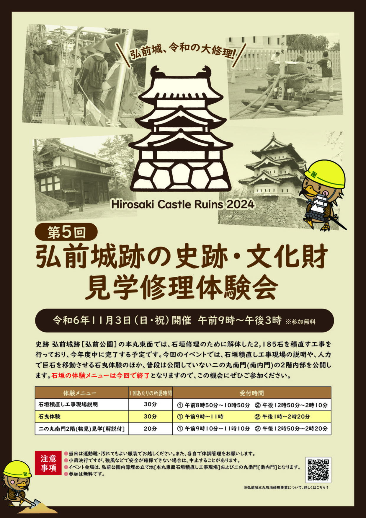 第5回「弘前城跡の史跡・文化財」見学修理体験会